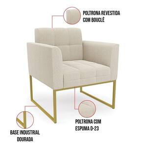 Poltrona Sala De Estar Industrial Dourado Elisa Bouclê D03 - D'rossi Cor Bege