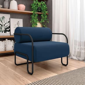 A Poltrona Ameli é uma poltrona que combina elegância, conforto e durabilidade. Ela tem um design moderno e sofisticado, com base em ferro com detalhe em sintético nas costas e revestimento em tecido Veludo Azul Marinho, que harmonizam com qualquer ambiente. Ela é ideal para sala de estar, recepções, mesa de jantar ou qualquer outro espaço que você queira decorar com estilo e bom gosto. Ela tem uma estrutura em madeira de reflorestamento eucalipto devidamente aparelhada com reforços de cantoneiras e chapas em MDF, que garante a resistência e a sustentabilidade do produto. Ela suporta até 120 kg de peso, podendo ser utilizada por pessoas de diferentes biotipos. Ela tem um acabamento reforçado, no assento (fixo) com espumas D-26 e persintas elásticas, no encosto (fixo) possui fibra siliconada que proporcionam flexibilidade e conforto. A Poltrona Ameli é um produto de alta qualidade, beleza e funcionalidade. Ela é fácil de transportar, pois tem um peso leve e um tamanho compacto. A Poltrona Ameli é um produto que vai fazer a diferença na sua decoração e no seu bem-estar. Ela vai trazer charme, conforto e durabilidade para o seu ambiente. Aproveite essa oferta e leve para casa uma poltrona de qualidade por um preço incrível. Essa é a sua chance de ter uma poltrona maravilhosa por um preço imperdível. Corra e garanta a sua antes que acabe o estoque!