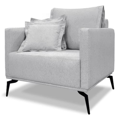 Poltrona Sala De Estar Liv 1 Lugar Pes Aço Linho Grigio Ezz Grigio