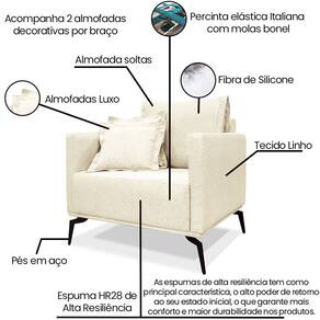 A Poltrona Liv foi desenvolvida para quem procura uma peça que une conforto e estilo. Com 80cm de largura e revestimento em linho de alta qualidade, proporciona um toque sofisticado e aconchegante, ideal para qualquer ambiente. Os pés em aço carbono garantem resistência e um design moderno, enquanto o encosto conta com almofadas soltas em fibra de silicone, oferecendo um suporte macio. O assento fixo possui percintas elásticas italianas e molas bonel, combinado com espuma HR28 e plumante em silicone, que garantem qualidade e conforto. Acompanha também duas almofadas decorativas, que adicionam um charme extra e permitem personalizar ainda mais a sua poltrona. Perfeita para diversos ambientes, a Poltrona Liv é a escolha ideal para quem busca aliar conforto e beleza no dia a dia. Este móvel chegará em sua casa separado em 01 volume.