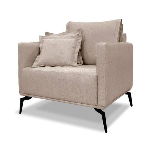 A Poltrona Rafaela é uma poltrona que combina elegância, conforto e durabilidade. Ela tem um design moderno e sofisticado, com pés em aço carbono e revestimento em tecido Linho, que harmonizam com qualquer ambiente. Ela é ideal para sala de estar, recepções ou qualquer outro espaço que você queira decorar com estilo e bom gosto. Ela tem uma estrutura em madeira de reflorestamento eucalipto, que garante a resistência e a sustentabilidade do produto. Ela suporta até 100 Kg de peso, podendo ser utilizada por pessoas de diferentes biotipos. Ela tem um acabamento reforçado, que oferece maciez e aconchego. Acompanha 2 almofadas decorativas por braço (Enchimento fibra de silicone). Ela tem assento Fixo com percintas elásticas italiana, espuma HR 28 e plumante em silicone, que proporcionam flexibilidade e conforto. Tem pés em aço carbono, alt.18 cm, cor preto, que protegem o produto contra corrosão e desgaste. A Poltrona Rafaela é um produto de alta qualidade, beleza e funcionalidade. Ela é fácil de transportar, pois tem um peso leve e um tamanho compacto. A Poltrona Rafaela é um produto que vai fazer a diferença na sua decoração e no seu bem-estar. Ela vai trazer charme, conforto e durabilidade para o seu ambiente. Aproveite essa oferta e leve para casa uma poltrona de qualidade por um preço incrível. Essa é a sua chance de ter uma poltrona maravilhosa por um preço imperdível. Corra e garanta a sua antes que acabe o estoque!