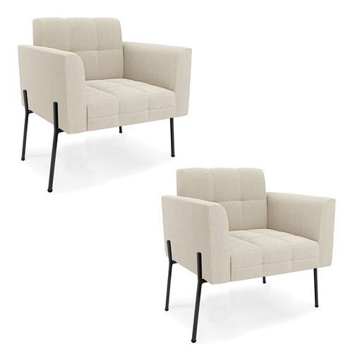 A Poltrona Elisa é uma poltrona que combina elegância, conforto e durabilidade. Ela tem um design retrô e sofisticado, com Pés Laterais de Ferro Preto e revestimento em tecido Bouclê Bege, que harmonizam com qualquer ambiente. Ela é ideal para sala de estar, recepções, escritórios, cozinhas ou qualquer outro espaço que você queira decorar com estilo e bom gosto. Ela tem uma estrutura em madeira de reflorestamento eucalipto, que garante a resistência e a sustentabilidade do produto. Ela suporta até 120 kg de peso, podendo ser utilizada por pessoas de diferentes biotipos. Ela tem um acabamento reforçado e espuma de qualidade D23, que oferece maciez e aconchego. Ela contém detalhes de costura no encosto e assento, resultando em um acabamento impecável, conferindo muito mais valor e elegância ao produto. A Poltrona Elisa é um móvel de alta qualidade, beleza e funcionalidade. Ela é fácil de transportar, pois tem um peso leve e um tamanho compacto. A Poltrona Elisa é um produto que vai fazer a diferença na sua decoração e no seu bem-estar. Ela vai trazer charme, conforto e durabilidade para o seu ambiente. Aproveite essa oferta e leve para casa uma poltrona de qualidade por um preço incrível. Essa é a sua chance de ter uma poltrona maravilhosa por um preço imperdível. Corra e garanta seu Kit 2 Poltronas antes que acabe o estoque!