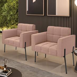 A Poltrona Elisa é uma poltrona que combina elegância, conforto e durabilidade. Ela tem um design retrô e sofisticado, com Pés Laterais de Ferro Preto e revestimento em tecido Bouclê Rosê, que harmonizam com qualquer ambiente. Ela é ideal para sala de estar, recepções, escritórios, cozinhas ou qualquer outro espaço que você queira decorar com estilo e bom gosto. Ela tem uma estrutura em madeira de reflorestamento eucalipto, que garante a resistência e a sustentabilidade do produto. Ela suporta até 120 kg de peso, podendo ser utilizada por pessoas de diferentes biotipos. Ela tem um acabamento reforçado e espuma de qualidade D23, que oferece maciez e aconchego. Ela contém detalhes de costura no encosto e assento, resultando em um acabamento impecável, conferindo muito mais valor e elegância ao produto. A Poltrona Elisa é um móvel de alta qualidade, beleza e funcionalidade. Ela é fácil de transportar, pois tem um peso leve e um tamanho compacto. A Poltrona Elisa é um produto que vai fazer a diferença na sua decoração e no seu bem-estar. Ela vai trazer charme, conforto e durabilidade para o seu ambiente. Aproveite essa oferta e leve para casa uma poltrona de qualidade por um preço incrível. Essa é a sua chance de ter uma poltrona maravilhosa por um preço imperdível. Corra e garanta seu Kit 2 Poltronas antes que acabe o estoque!