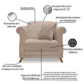 A Poltrona Julieta é uma poltrona que combina elegância, conforto e durabilidade. Ela tem um design moderno e sofisticado, com pés em madeira maciça na cor mel e revestimento em tecido Linho Rústico, que harmonizam com qualquer ambiente. Ela é ideal para sala de estar, recepções ou qualquer outro espaço que você queira decorar com estilo e bom gosto. Ela tem uma estrutura em madeira de reflorestamento eucalipto, que garante a resistência e a sustentabilidade do produto. Ela suporta até 120 kg de peso, podendo ser utilizada por pessoas de diferentes biotipos. Ela tem um acabamento reforçado com espuma de qualidade no encosto D23 e plumante em silicone, que oferece maciez e aconchego. Acompanha 1 almofada decorativa ( Enchimento fibra de silicone) bordadas em matelassê por braço. Ela tem assento Fixo com percintas elásticas italiana, espuma HR 28 e plumante em silicone, que proporcionam flexibilidade e conforto. Tem pés em madeira maciça com altura de 12 cm, que protegem o produto contra corrosão e desgaste. A Poltrona Julieta é um produto de alta qualidade, beleza e funcionalidade. Ela é fácil de transportar, pois tem um peso leve e um tamanho compacto. A Poltrona Julieta é um produto que vai fazer a diferença na sua decoração e no seu bem-estar. Ela vai trazer charme, conforto e durabilidade para o seu ambiente. Aproveite essa oferta e leve para casa uma poltrona de qualidade por um preço incrível. Essa é a sua chance de ter uma poltrona maravilhosa por um preço imperdível. Corra e garanta a sua antes que acabe o estoque!