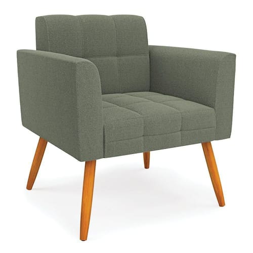 A Poltrona Elisa é uma poltrona que combina elegância, conforto e durabilidade. Ela tem um design retrô e sofisticado, com Pés Palito Castanho e revestimento em tecido Bouclê Menta, que harmonizam com qualquer ambiente. Ela é ideal para sala de estar, recepções, escritórios, cozinhas ou qualquer outro espaço que você queira decorar com estilo e bom gosto. Ela tem uma estrutura em madeira de reflorestamento eucalipto, que garante a resistência e a sustentabilidade do produto. Ela suporta até 120 kg de peso, podendo ser utilizada por pessoas de diferentes biotipos. Ela tem um acabamento reforçado e espuma de qualidade D23, que oferece maciez e aconchego. Ela contém detalhes de costura no encosto e assento, resultando em um acabamento impecável, conferindo muito mais valor e elegância ao produto. A Poltrona Elisa é um móvel de alta qualidade, beleza e funcionalidade. Ela é fácil de transportar, pois tem um peso leve e um tamanho compacto. A Poltrona Elisa é um produto que vai fazer a diferença na sua decoração e no seu bem-estar. Ela vai trazer charme, conforto e durabilidade para o seu ambiente. Aproveite essa oferta e leve para casa uma poltrona de qualidade por um preço incrível. Essa é a sua chance de ter uma poltrona maravilhosa por um preço imperdível. Corra e garanta a sua antes que acabe o estoque!