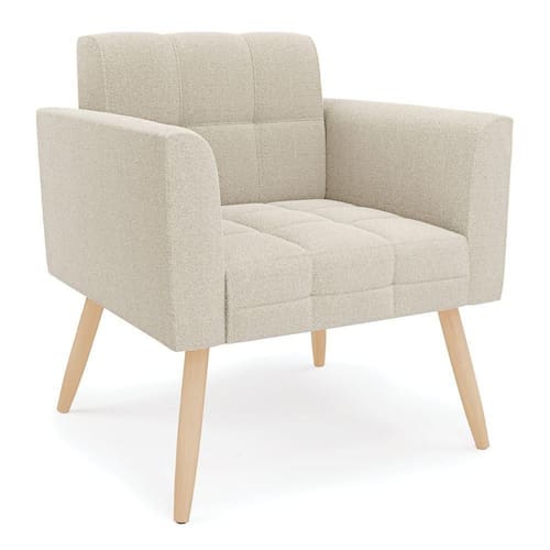 Poltrona Sala De Estar Pé Palito Natural Elisa Bouclê D03 - D'rossi Cor Bege