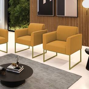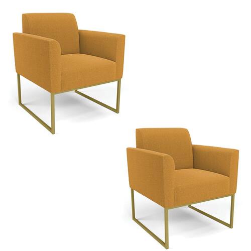 Poltrona Sala Estar Industrial Dourado Kit 2 Marisa Bouclê D03 - D`Rossi - Mostarda