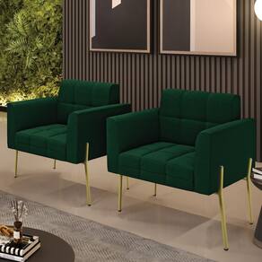 A Poltrona Elisa é uma poltrona que combina elegância, conforto e durabilidade. Ela tem um design retrô e sofisticado, com Pés Laterais de Ferro Dourado e revestimento em tecido Bouclê Verde, que harmonizam com qualquer ambiente. Ela é ideal para sala de estar, recepções, escritórios, cozinhas ou qualquer outro espaço que você queira decorar com estilo e bom gosto. Ela tem uma estrutura em madeira de reflorestamento eucalipto, que garante a resistência e a sustentabilidade do produto. Ela suporta até 120 kg de peso, podendo ser utilizada por pessoas de diferentes biotipos. Ela tem um acabamento reforçado e espuma de qualidade D23, que oferece maciez e aconchego. Ela contém detalhes de costura no encosto e assento, resultando em um acabamento impecável, conferindo muito mais valor e elegância ao produto. A Poltrona Elisa é um móvel de alta qualidade, beleza e funcionalidade. Ela é fácil de transportar, pois tem um peso leve e um tamanho compacto. A Poltrona Elisa é um produto que vai fazer a diferença na sua decoração e no seu bem-estar. Ela vai trazer charme, conforto e durabilidade para o seu ambiente. Aproveite essa oferta e leve para casa uma poltrona de qualidade por um preço incrível. Essa é a sua chance de ter uma poltrona maravilhosa por um preço imperdível. Corra e garanta seu Kit 2 Poltronas antes que acabe o estoque!