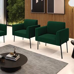 Poltrona Sala Estar Pé Ferro Preto Kit 2 Marisa Bouclê D03 - D`Rossi - Verde