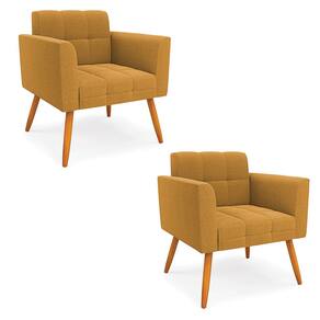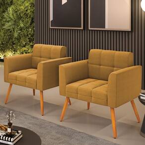 Poltrona Sala Estar Pé Palito Castanho Kit 2 Elisa Bouclê D03 - D`Rossi - Mostarda