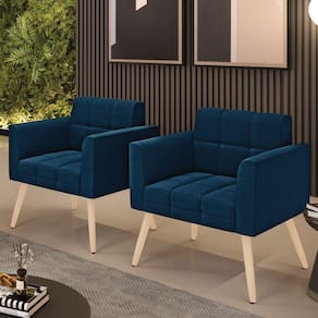 A Poltrona Elisa é uma poltrona que combina elegância, conforto e durabilidade. Ela tem um design retrô e sofisticado, com Pés Palito Natural e revestimento em tecido Bouclê Azul, que harmonizam com qualquer ambiente. Ela é ideal para sala de estar, recepções, escritórios, cozinhas ou qualquer outro espaço que você queira decorar com estilo e bom gosto. Ela tem uma estrutura em madeira de reflorestamento eucalipto, que garante a resistência e a sustentabilidade do produto. Ela suporta até 120 kg de peso, podendo ser utilizada por pessoas de diferentes biotipos. Ela tem um acabamento reforçado e espuma de qualidade D23, que oferece maciez e aconchego. Ela contém detalhes de costura no encosto e assento, resultando em um acabamento impecável, conferindo muito mais valor e elegância ao produto. A Poltrona Elisa é um móvel de alta qualidade, beleza e funcionalidade. Ela é fácil de transportar, pois tem um peso leve e um tamanho compacto. A Poltrona Elisa é um produto que vai fazer a diferença na sua decoração e no seu bem-estar. Ela vai trazer charme, conforto e durabilidade para o seu ambiente. Aproveite essa oferta e leve para casa uma poltrona de qualidade por um preço incrível. Essa é a sua chance de ter uma poltrona maravilhosa por um preço imperdível. Corra e garanta seu Kit 2 Poltronas antes que acabe o estoque!