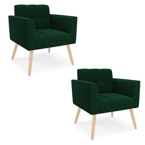 Poltrona Sala Estar Pé Palito Natural Kit 2 Elisa Bouclê D03 - D?rossi Cor Verde A Poltrona Elisa é uma poltrona que combina elegância, conforto e durabilidade. Ela tem um design retrô e sofisticado, com Pés Palito Natural e revestimento em tecido Bouclê. Ela é ideal para sala de estar, recepções, escritórios, cozinhas ou qualquer outro espaço que você queira decorar com estilo e bom gosto. Ela tem uma estrutura em madeira de reflorestamento eucalipto, que garante a resistência e a sustentabilidade do produto. Ela suporta até 120 kg de peso, podendo ser utilizada por pessoas de diferentes biotipos. Ela tem um acabamento reforçado e espuma de qualidade D23, que oferece maciez e aconchego. Ela contém detalhes de costura no encosto e assento, resultando em um acabamento impecável, conferindo muito mais valor e elegância ao produto. A Poltrona Elisa é um móvel de alta qualidade, beleza e funcionalidade. Ela é fácil de transportar, pois tem um peso leve e um tamanho compacto. A Poltrona Elisa é um produto que vai fazer a diferença na sua decoração e no seu bem-estar. Ela vai trazer charme, conforto e durabilidade para o seu ambiente. Aproveite essa e leve para casa uma poltrona de qualidade por um preço incrível. Essa é a sua chance de ter uma poltrona maravilhosa por um preço imperdível. Corra e garanta seu Kit 2 Poltronas antes que acabe o estoque! Dimensões do Produto: Altura Total: 81 cm Largura Total: 64 cm Profundidade Total: 64 cm Altura do Encosto: 36 cm Largura do Assento: 47 cm Profundidade do Assento: 48 cm Altura do chão ao Assento: 45 cm Espessura do Assento: 18 cm Espessura do braço: 9 cm Altura interna do braço: 20 cm Tamanho dos pés: 30 cm Peso: 14 kg Especificações do Produto: Estrutura: Madeira Eucalipto Espuma: D-23 Tecido: Bouclê Peso Suportado: Até 120 Kg Tipo de Pés: Pés Palito Natural Tipo de Encosto: Fixo Tipo de Assento: Fixo Complexidade da Montagem: Baixo Montagem: O produto vai montado, apenas rosquear os pés Garantia: 90 dias contra de fabricação Instruções de Limpeza: Utilizar um pano limpo e levemente úmido Você irá Receber: 02 Poltronas - Entregue em: 02 Volumes