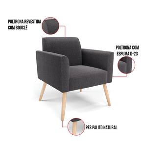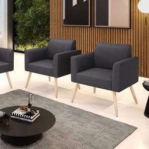 Poltrona Sala Estar Pé Palito Natural Kit 2 Marisa Bouclê D03 - D`Rossi - Grafite
