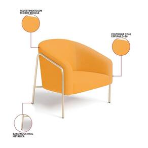 Poltrona Sala Industrial Alta Champanhe Kit 2 Stella Bouclê D03 - D'rossi Cor Mostarda O kit com 2 Poltronas Stella com base industrial champanhe e revestimento em bouclê une conforto e resistência em um único móvel. Seu design moderno apresenta linhas curvas elegantes no encosto e braços integrados, transmitindo aconchego e refinamento. A base metálica alta, feita em tubos arredondados resistentes à oxidação, contorna lateralmente a peça, criando um visual leve e robusto. A estrutura em madeira de eucalipto garante durabilidade, enquanto o estofamento em espuma D-26 de alta densidade proporciona maciez e suporte ergonômico. O aço carbono com pintura eletrostática da base assegura estabilidade e acabamento duradouro. Suportando até 120 kg, a Poltrona Stella é ideal para salas de estar, recepções ou cantos de leitura, agregando bem-estar ao ambiente. Versátil, combina com diferentes estilos, do industrial ao minimalista sofisticado. A Poltrona Stella vem para ser a protagonista da sua decoração, unindo sofisticação e exclusividade. Dimensões do Produto: Altura Total: 80 cm Largura Total: 73 cm Profundidade Total: 67 cm Peso: 21 kg Outras Medidas: Altura do Encosto: 40 cm Largura do Assento: 45 cm Profundidade do Assento: 45 cm Altura do chão ao Assento: 45 cm Espessura do Assento: 15 cm Espessura do Braço: 7 cm Altura do chão ao Braço: 70 cm Altura Interna do Braço: 28 cm Especificações do Produto: Estrutura: Madeira de Eucalipto Material do Estofamento: Espuma D-26 (alta densidade) Revestimento: Bouclê Peso Máximo Suportado: Até 120 Kg Tipo de Pés: Base Industrial Material/Acabamento da Base: Aço Carbono com Pintura eletrostática Inclui Almofada Extra: Não Tipo de Encosto: Fixo Tipo de Assento: Fixo Com Apoio de Pés: Não Com Altura Ajustável: Não É Reclinável: Não É Giratória: Não Diferenciais: Design moderno com linhas curvas; Detalhe lateral em tubo metálico redondo resistente à oxidação. Complexidade da Montagem: Baixa Montagem: O produto vai montado, apenas parafusar a base na poltrona Garantia: 90 dias contra de fabricação Instruções de Limpeza: Utilizar um pano limpo e levemente úmido Quantidade de Volumes: 2 Caixas Medida das Embalagens: Caixa 1: 86 cm x 84 cm x 66 cm; Caixa 2: 86 cm x 84 cm x 66 cm. : É feita somente até o térreo ou portaria. Confira sempre as medidas das embalagens para assegurar que o produto passe por portas e escadas do .