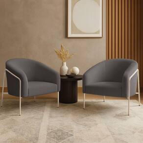 Poltrona Sala Industrial Alta Champanhe Kit 2 Stella Bouclê Grafite D03 - D'rossi O kit com 2 Poltronas Stella com base industrial champanhe e revestimento em bouclê grafite une conforto e resistência em um único móvel. Seu design moderno apresenta linhas curvas elegantes no encosto e braços integrados, transmitindo aconchego e refinamento. A base metálica alta, feita em tubos arredondados resistentes à oxidação, contorna lateralmente a peça, criando um visual leve e robusto. A estrutura em madeira de eucalipto garante durabilidade, enquanto o estofamento em espuma D-26 de alta densidade proporciona maciez e suporte ergonômico. O aço carbono com pintura eletrostática da base assegura estabilidade e acabamento duradouro. Suportando até 120 kg, a Poltrona Stella é ideal para salas de estar, recepções ou cantos de leitura, agregando bem-estar ao ambiente. Versátil, combina com diferentes estilos, do industrial ao minimalista sofisticado. A Poltrona Stella vem para ser a protagonista da sua decoração, unindo sofisticação e exclusividade. Dimensões do Produto: Altura Total: 80 cm Largura Total: 73 cm Profundidade Total: 67 cm Peso: 21 kg Outras Medidas: Altura do Encosto: 40 cm Largura do Assento: 45 cm Profundidade do Assento: 45 cm Altura do chão ao Assento: 45 cm Espessura do Assento: 15 cm Espessura do Braço: 7 cm Altura do chão ao Braço: 70 cm Altura Interna do Braço: 28 cm Especificações do Produto: Estrutura: Madeira de Eucalipto Material do Estofamento: Espuma D-26 (alta densidade) Revestimento: Bouclê Peso Máximo Suportado: Até 120 Kg Tipo de Pés: Base Industrial Material/Acabamento da Base: Aço Carbono com Pintura eletrostática Inclui Almofada Extra: Não Tipo de Encosto: Fixo Tipo de Assento: Fixo Com Apoio de Pés: Não Com Altura Ajustável: Não É Reclinável: Não É Giratória: Não Diferenciais: Design moderno com linhas curvas; Detalhe lateral em tubo metálico redondo resistente à oxidação. Complexidade da Montagem: Baixa Montagem: O produto vai montado, apenas parafusar a base na poltrona Garantia: 90 dias contra de fabricação Instruções de Limpeza: Utilizar um pano limpo e levemente úmido Quantidade de Volumes: 2 Caixas Medida das Embalagens: Caixa 1: 86 cm x 84 cm x 66 cm; Caixa 2: 86 cm x 84 cm x 66 cm. : É feita somente até o térreo ou portaria. Confira sempre as medidas das embalagens para assegurar que o produto passe por portas e escadas do .