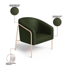 Poltrona Sala Industrial Alta Champanhe Kit 2 Stella Sintético Pu D03 - D'rossi Cor Verde O kit com 2 Poltronas Stella com base industrial champanhe e revestimento em sitético pu une conforto e resistência em um único móvel. Seu design moderno apresenta linhas curvas elegantes no encosto e braços integrados, transmitindo aconchego e refinamento. A base metálica alta, feita em tubos arredondados resistentes à oxidação, contorna lateralmente a peça, criando um visual leve e robusto. A estrutura em madeira de eucalipto garante durabilidade, enquanto o estofamento em espuma D-26 de alta densidade proporciona maciez e suporte ergonômico. O aço carbono com pintura eletrostática da base assegura estabilidade e acabamento duradouro. Suportando até 120 kg, a Poltrona Stella é ideal para salas de estar, recepções ou cantos de leitura, agregando bem-estar ao ambiente. Versátil, combina com diferentes estilos, do industrial ao minimalista sofisticado. A Poltrona Stella vem para ser a protagonista da sua decoração, unindo sofisticação e exclusividade. Dimensões do Produto: Altura Total: 80 cm Largura Total: 73 cm Profundidade Total: 67 cm Peso: 21 kg Outras Medidas: Altura do Encosto: 40 cm Largura do Assento: 45 cm Profundidade do Assento: 45 cm Altura do chão ao Assento: 45 cm Espessura do Assento: 15 cm Espessura do Braço: 7 cm Altura do chão ao Braço: 70 cm Altura Interna do Braço: 28 cm Especificações do Produto: Estrutura: Madeira de Eucalipto Material do Estofamento: Espuma D-26 (alta densidade) Revestimento: Sintético puPeso Máximo Suportado: Até 120 Kg Tipo de Pés: Base Industrial Material/Acabamento da Base: Aço Carbono com Pintura eletrostática Inclui Almofada Extra: Não Tipo de Encosto: Fixo Tipo de Assento: Fixo Com Apoio de Pés: Não Com Altura Ajustável: Não É Reclinável: Não É Giratória: Não Diferenciais: Design moderno com linhas curvas; Detalhe lateral em tubo metálico redondo resistente à oxidação. Complexidade da Montagem: Baixa Montagem: O produto vai montado, apenas parafusar a base na poltrona Garantia: 90 dias contra de fabricação Instruções de Limpeza: Utilizar um pano limpo e levemente úmido Quantidade de Volumes: 2 Caixas Medida das Embalagens: Caixa 1: 86 x 84 x 66 cm; Caixa 2: 86 x 84 x 66 cm. : É feita somente até o térreo ou portaria. Confira sempre as medidas das embalagens para assegurar que o produto passe por portas e escadas do .