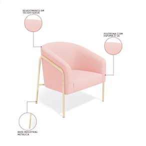 Poltrona Sala Industrial Alta Champanhe Kit 2 Stella Suede D03 - D'rossi Cor Rosa Bebê O kit com 2 Poltronas Stella com base industrial champanhe e revestimento em suede une conforto e resistência em um único móvel. Seu design moderno apresenta linhas curvas elegantes no encosto e braços integrados, transmitindo aconchego e refinamento. A base metálica alta, feita em tubos arredondados resistentes à oxidação, contorna lateralmente a peça, criando um visual leve e robusto. A estrutura em madeira de eucalipto garante durabilidade, enquanto o estofamento em espuma D-26 de alta densidade proporciona maciez e suporte ergonômico. O aço carbono com pintura eletrostática da base assegura estabilidade e acabamento duradouro. Suportando até 120 kg, a Poltrona Stella é ideal para salas de estar, recepções ou cantos de leitura, agregando bem-estar ao ambiente. Versátil, combina com diferentes estilos, do industrial ao minimalista sofisticado. A Poltrona Stella vem para ser a protagonista da sua decoração, unindo sofisticação e exclusividade. Dimensões do Produto: Altura Total: 80 cm Largura Total: 73 cm Profundidade Total: 67 cm Peso: 21 kg Outras Medidas: Altura do Encosto: 40 cm Largura do Assento: 45 cm Profundidade do Assento: 45 cm Altura do chão ao Assento: 45 cm Espessura do Assento: 15 cm Espessura do Braço: 7 cm Altura do chão ao Braço: 70 cm Altura Interna do Braço: 28 cm Especificações do Produto: Estrutura: Madeira de Eucalipto Material do Estofamento: Espuma D-26 (alta densidade) Revestimento: Suede Peso Máximo Suportado: Até 120 Kg Tipo de Pés: Base Industrial Material/Acabamento da Base: Aço Carbono com Pintura eletrostática Inclui Almofada Extra: Não Tipo de Encosto: Fixo Tipo de Assento: Fixo Com Apoio de Pés: Não Com Altura Ajustável: Não É Reclinável: Não É Giratória: Não Diferenciais: Design moderno com linhas curvas; Detalhe lateral em tubo metálico redondo resistente à oxidação. Complexidade da Montagem: Baixa Montagem: O produto vai montado, apenas parafusar a base na poltrona Garantia: 90 dias contra de fabricação Instruções de Limpeza: Utilizar um pano limpo e levemente úmido Quantidade de Volumes: 2 Caixas Medida das Embalagens: Caixa 1: 86 cm x 84 cm x 66 cm; Caixa 2: 86 cm x 84 cm x 66 cm. : É feita somente até o térreo ou portaria. Confira sempre as medidas das embalagens para assegurar que o produto passe por portas e escadas do .