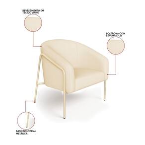 Poltrona Sala Industrial Alta Champanhe Stella Linho D03 - D'rossi Cor Bege A Poltrona Stella com base industrial alta champanhe e revestimento em linho une conforto e resistência em um único móvel. Seu design moderno apresenta linhas curvas elegantes no encosto e braços integrados, transmitindo aconchego e refinamento. A base metálica alta, feita em tubos arredondados resistentes à oxidação, contorna lateralmente a peça, criando um visual leve e robusto. A estrutura em madeira de eucalipto garante durabilidade, enquanto o estofamento em espuma D-26 de alta densidade proporciona maciez e suporte ergonômico. O aço carbono com pintura eletrostática da base assegura estabilidade e acabamento duradouro. Suportando até 120 kg, a Poltrona Stella é ideal para salas de estar, recepções ou cantos de leitura, agregando bem-estar ao ambiente. Versátil, combina com diferentes estilos, do industrial ao minimalista sofisticado. A Poltrona Stella vem para ser a protagonista da sua decoração, unindo sofisticação e exclusividade. Dimensões do Produto: Altura Total: 80 cm Largura Total: 73 cm Profundidade Total: 67 cm Peso: 21 kg Outras Medidas: Altura do Encosto: 40 cm Largura do Assento: 45 cm Profundidade do Assento: 45 cm Altura do chão ao Assento: 45 cm Espessura do Assento: 15 cm Espessura do Braço: 7 cm Altura do chão ao Braço: 70 cm Altura Interna do Braço: 28 cm Especificações do Produto: Estrutura: Madeira de Eucalipto Material do Estofamento: Espuma D-26 (alta densidade) Revestimento: LinhoPeso Máximo Suportado: Até 120 Kg Tipo de Pés: Base Industrial Material/Acabamento da Base: Aço Carbono com Pintura eletrostática Inclui Almofada Extra: Não Tipo de Encosto: Fixo Tipo de Assento: Fixo Com Apoio de Pés: Não Com Altura Ajustável: Não É Reclinável: Não É Giratória: Não Diferenciais: Design moderno com linhas curvas; Detalhe lateral em tubo metálico redondo resistente à oxidação. Complexidade da Montagem: Baixa Montagem: O produto vai montado, apenas parafusar a base na poltrona Garantia: 90 dias contra de fabricação Instruções de Limpeza: Utilizar um pano limpo e levemente úmido Quantidade de Volumes: 1 Caixa Medida das Embalagens: Caixa : 72 cm x 66 cm x 57 cm : É feita somente até o térreo ou portaria. Confira sempre as medidas das embalagens para assegurar que o produto passe por portas e escadas do .