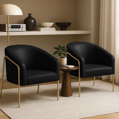 Poltrona Sala Industrial Alta Dourado Kit 2 Stella Sintético Pu D03 - D'rossi Cor Preto O kit com 2 Poltronas Stella com base industrial dourado e revestimento em sitético pu une conforto e resistência em um único móvel. Seu design moderno apresenta linhas curvas elegantes no encosto e braços integrados, transmitindo aconchego e refinamento. A base metálica alta, feita em tubos arredondados resistentes à oxidação, contorna lateralmente a peça, criando um visual leve e robusto. A estrutura em madeira de eucalipto garante durabilidade, enquanto o estofamento em espuma D-26 de alta densidade proporciona maciez e suporte ergonômico. O aço carbono com pintura eletrostática da base assegura estabilidade e acabamento duradouro. Suportando até 120 kg, a Poltrona Stella é ideal para salas de estar, recepções ou cantos de leitura, agregando bem-estar ao ambiente. Versátil, combina com diferentes estilos, do industrial ao minimalista sofisticado. A Poltrona Stella vem para ser a protagonista da sua decoração, unindo sofisticação e exclusividade. Dimensões do Produto: Altura Total: 80 cm Largura Total: 73 cm Profundidade Total: 67 cm Peso: 21 kg Outras Medidas: Altura do Encosto: 40 cm Largura do Assento: 45 cm Profundidade do Assento: 45 cm Altura do chão ao Assento: 45 cm Espessura do Assento: 15 cm Espessura do Braço: 7 cm Altura do chão ao Braço: 70 cm Altura Interna do Braço: 28 cm Especificações do Produto: Estrutura: Madeira de Eucalipto Material do Estofamento: Espuma D-26 (alta densidade) Revestimento: Sintético puPeso Máximo Suportado: Até 120 Kg Tipo de Pés: Base Industrial Material/Acabamento da Base: Aço Carbono com Pintura eletrostática Inclui Almofada Extra: Não Tipo de Encosto: Fixo Tipo de Assento: Fixo Com Apoio de Pés: Não Com Altura Ajustável: Não É Reclinável: Não É Giratória: Não Diferenciais: Design moderno com linhas curvas; Detalhe lateral em tubo metálico redondo resistente à oxidação. Complexidade da Montagem: Baixa Montagem: O produto vai montado, apenas parafusar a base na poltrona Garantia: 90 dias contra de fabricação Instruções de Limpeza: Utilizar um pano limpo e levemente úmido Quantidade de Volumes: 2 Caixas Medida das Embalagens: Caixa 1: 86 x 84 x 66 cm; Caixa 2: 86 x 84 x 66 cm. : É feita somente até o térreo ou portaria. Confira sempre as medidas das embalagens para assegurar que o produto passe por portas e escadas do .