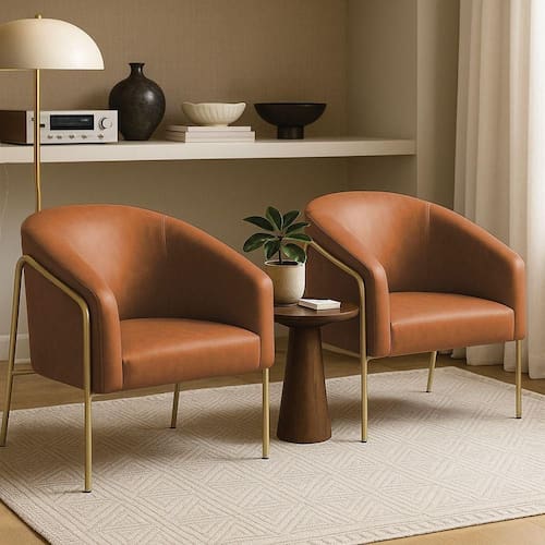 Poltrona Sala Industrial Alta Dourado Kit 2 Stella Sintético Pu Whisky D03 - D'rossi O kit com 2 Poltronas Stella com base industrial dourado e revestimento em sitético pu whisky une conforto e resistência em um único móvel. Seu design moderno apresenta linhas curvas elegantes no encosto e braços integrados, transmitindo aconchego e refinamento. A base metálica alta, feita em tubos arredondados resistentes à oxidação, contorna lateralmente a peça, criando um visual leve e robusto. A estrutura em madeira de eucalipto garante durabilidade, enquanto o estofamento em espuma D-26 de alta densidade proporciona maciez e suporte ergonômico. O aço carbono com pintura eletrostática da base assegura estabilidade e acabamento duradouro. Suportando até 120 kg, a Poltrona Stella é ideal para salas de estar, recepções ou cantos de leitura, agregando bem-estar ao ambiente. Versátil, combina com diferentes estilos, do industrial ao minimalista sofisticado. A Poltrona Stella vem para ser a protagonista da sua decoração, unindo sofisticação e exclusividade. Dimensões do Produto: Altura Total: 80 cm Largura Total: 73 cm Profundidade Total: 67 cm Peso: 21 kg Outras Medidas: Altura do Encosto: 40 cm Largura do Assento: 45 cm Profundidade do Assento: 45 cm Altura do chão ao Assento: 45 cm Espessura do Assento: 15 cm Espessura do Braço: 7 cm Altura do chão ao Braço: 70 cm Altura Interna do Braço: 28 cm Especificações do Produto: Estrutura: Madeira de Eucalipto Material do Estofamento: Espuma D-26 (alta densidade) Revestimento: Sintético puPeso Máximo Suportado: Até 120 Kg Tipo de Pés: Base Industrial Material/Acabamento da Base: Aço Carbono com Pintura eletrostática Inclui Almofada Extra: Não Tipo de Encosto: Fixo Tipo de Assento: Fixo Com Apoio de Pés: Não Com Altura Ajustável: Não É Reclinável: Não É Giratória: Não Diferenciais: Design moderno com linhas curvas; Detalhe lateral em tubo metálico redondo resistente à oxidação. Complexidade da Montagem: Baixa Montagem: O produto vai montado, apenas parafusar a base na poltrona Garantia: 90 dias contra de fabricação Instruções de Limpeza: Utilizar um pano limpo e levemente úmido Quantidade de Volumes: 2 Caixas Medida das Embalagens: Caixa 1: 86 x 84 x 66 cm; Caixa 2: 86 x 84 x 66 cm. : É feita somente até o térreo ou portaria. Confira sempre as medidas das embalagens para assegurar que o produto passe por portas e escadas do .