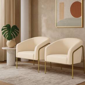 Poltrona Sala Industrial Alta Dourado Kit 2 Stella Veludo Bege D03 - D'rossi O kit com 2 Poltronas Stella com base industrial dourado e revestimento em veludo bege une conforto e resistência em um único móvel. Seu design moderno apresenta linhas curvas elegantes no encosto e braços integrados, transmitindo aconchego e refinamento. A base metálica alta, feita em tubos arredondados resistentes à oxidação, contorna lateralmente a peça, criando um visual leve e robusto. A estrutura em madeira de eucalipto garante durabilidade, enquanto o estofamento em espuma D-26 de alta densidade proporciona maciez e suporte ergonômico. O aço carbono com pintura eletrostática da base assegura estabilidade e acabamento duradouro. Suportando até 120 kg, a Poltrona Stella é ideal para salas de estar, recepções ou cantos de leitura, agregando bem-estar ao ambiente. Versátil, combina com diferentes estilos, do industrial ao minimalista sofisticado. A Poltrona Stella vem para ser a protagonista da sua decoração, unindo sofisticação e exclusividade. Dimensões do Produto: Altura Total: 80 cm Largura Total: 73 cm Profundidade Total: 67 cm Peso: 21 kg Outras Medidas: Altura do Encosto: 40 cm Largura do Assento: 45 cm Profundidade do Assento: 45 cm Altura do chão ao Assento: 45 cm Espessura do Assento: 15 cm Espessura do Braço: 7 cm Altura do chão ao Braço: 70 cm Altura Interna do Braço: 28 cm Especificações do Produto: Estrutura: Madeira de Eucalipto Material do Estofamento: Espuma D-26 (alta densidade) Revestimento: VeludoPeso Máximo Suportado: Até 120 Kg Tipo de Pés: Base Industrial Material/Acabamento da Base: Aço Carbono com Pintura eletrostática Inclui Almofada Extra: Não Tipo de Encosto: Fixo Tipo de Assento: Fixo Com Apoio de Pés: Não Com Altura Ajustável: Não É Reclinável: Não É Giratória: Não Diferenciais: Design moderno com linhas curvas; Detalhe lateral em tubo metálico redondo resistente à oxidação. Complexidade da Montagem: Baixa Montagem: O produto vai montado, apenas parafusar a base na poltrona Garantia: 90 dias contra de fabricação Instruções de Limpeza: Utilizar um pano limpo e levemente úmido Quantidade de Volumes: 2 Caixas Medida das Embalagens: Caixa 1: 86 cm x 84 cm x 66 cm; Caixa 2: 86 cm x 84 cm x 66 cm. : É feita somente até o térreo ou portaria. Confira sempre as medidas das embalagens para assegurar que o produto passe por portas e escadas do .