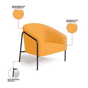 Poltrona Sala Industrial Alta Preto Kit 2 Stella Bouclê D03 - D'rossi Cor Mostarda O kit com 2 Poltronas Stella com base industrial alta preta e revestimento em bouclê une conforto e resistência em um único móvel. Seu design moderno apresenta linhas curvas elegantes no encosto e braços integrados, transmitindo aconchego e refinamento. A base metálica alta, feita em tubos arredondados resistentes à oxidação, contorna lateralmente a peça, criando um visual leve e robusto. A estrutura em madeira de eucalipto garante durabilidade, enquanto o estofamento em espuma D-26 de alta densidade proporciona maciez e suporte ergonômico. O aço carbono com pintura eletrostática da base assegura estabilidade e acabamento duradouro. Suportando até 120 kg, a Poltrona Stella é ideal para salas de estar, recepções ou cantos de leitura, agregando bem-estar ao ambiente. Versátil, combina com diferentes estilos, do industrial ao minimalista sofisticado. A Poltrona Stella vem para ser a protagonista da sua decoração, unindo sofisticação e exclusividade. Dimensões do Produto: Altura Total: 80 cm Largura Total: 73 cm Profundidade Total: 67 cm Peso: 21 kg Outras Medidas: Altura do Encosto: 40 cm Largura do Assento: 45 cm Profundidade do Assento: 45 cm Altura do chão ao Assento: 45 cm Espessura do Assento: 15 cm Espessura do Braço: 7 cm Altura do chão ao Braço: 70 cm Altura Interna do Braço: 28 cm Especificações do Produto: Estrutura: Madeira de Eucalipto Material do Estofamento: Espuma D-26 (alta densidade) Revestimento: Bouclê Peso Máximo Suportado: Até 120 Kg Tipo de Pés: Base Industrial Material/Acabamento da Base: Aço Carbono com Pintura eletrostática Inclui Almofada Extra: Não Tipo de Encosto: Fixo Tipo de Assento: Fixo Com Apoio de Pés: Não Com Altura Ajustável: Não É Reclinável: Não É Giratória: Não Diferenciais: Design moderno com linhas curvas; Detalhe lateral em tubo metálico redondo resistente à oxidação. Complexidade da Montagem: Baixa Montagem: O produto vai montado, apenas parafusar a base na poltrona Garantia: 90 dias contra de fabricação Instruções de Limpeza: Utilizar um pano limpo e levemente úmido Quantidade de Volumes: 2 Caixas Medida das Embalagens: Caixa 1: 86 cm x 84 cm x 66 cm; Caixa 2: 86 cm x 84 cm x 66 cm. : É feita somente até o térreo ou portaria. Confira sempre as medidas das embalagens para assegurar que o produto passe por portas e escadas do .