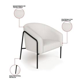 Poltrona Sala Industrial Alta Preto Kit 2 Stella Linho Cinza D03 - D'rossi O kit com 2 Poltronas Stella com base industrial preto e revestimento em linho cinza une conforto e resistência em um único móvel. Seu design moderno apresenta linhas curvas elegantes no encosto e braços integrados, transmitindo aconchego e refinamento. A base metálica alta, feita em tubos arredondados resistentes à oxidação, contorna lateralmente a peça, criando um visual leve e robusto. A estrutura em madeira de eucalipto garante durabilidade, enquanto o estofamento em espuma D-26 de alta densidade proporciona maciez e suporte ergonômico. O aço carbono com pintura eletrostática da base assegura estabilidade e acabamento duradouro. Suportando até 120 kg, a Poltrona Stella é ideal para salas de estar, recepções ou cantos de leitura, agregando bem-estar ao ambiente. Versátil, combina com diferentes estilos, do industrial ao minimalista sofisticado. A Poltrona Stella vem para ser a protagonista da sua decoração, unindo sofisticação e exclusividade. Dimensões do Produto: Altura Total: 80 cm Largura Total: 73 cm Profundidade Total: 67 cm Peso: 21 kg Outras Medidas: Altura do Encosto: 40 cm Largura do Assento: 45 cm Profundidade do Assento: 45 cm Altura do chão ao Assento: 45 cm Espessura do Assento: 15 cm Espessura do Braço: 7 cm Altura do chão ao Braço: 70 cm Altura Interna do Braço: 28 cm Especificações do Produto: Estrutura: Madeira de Eucalipto Material do Estofamento: Espuma D-26 (alta densidade) Revestimento: LinhoPeso Máximo Suportado: Até 120 Kg Tipo de Pés: Base Industrial Material/Acabamento da Base: Aço Carbono com Pintura eletrostática Inclui Almofada Extra: Não Tipo de Encosto: Fixo Tipo de Assento: Fixo Com Apoio de Pés: Não Com Altura Ajustável: Não É Reclinável: Não É Giratória: Não Diferenciais: Design moderno com linhas curvas; Detalhe lateral em tubo metálico redondo resistente à oxidação. Complexidade da Montagem: Baixa Montagem: O produto vai montado, apenas parafusar a base na poltrona Garantia: 90 dias contra de fabricação Instruções de Limpeza: Utilizar um pano limpo e levemente úmido Quantidade de Volumes: 2 Caixas Medida das Embalagens: Caixa 1: 86 cm x 84 cm x 66 cm; Caixa 2: 86 cm x 84 cm x 66 cm. : É feita somente até o térreo ou portaria. Confira sempre as medidas das embalagens para assegurar que o produto passe por portas e escadas do .