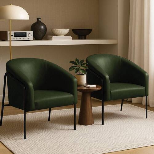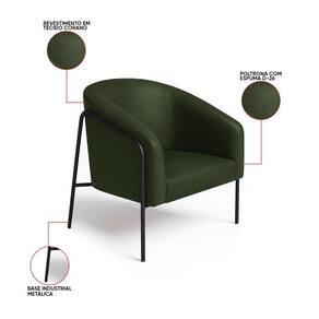Poltrona Sala Industrial Alta Preto Kit 2 Stella Sintético Pu Verde D03 - D'rossi O kit com 2 Poltronas Stella com base industrial preto e revestimento em sitético pu verde une conforto e resistência em um único móvel. Seu design moderno apresenta linhas curvas elegantes no encosto e braços integrados, transmitindo aconchego e refinamento. A base metálica alta, feita em tubos arredondados resistentes à oxidação, contorna lateralmente a peça, criando um visual leve e robusto. A estrutura em madeira de eucalipto garante durabilidade, enquanto o estofamento em espuma D-26 de alta densidade proporciona maciez e suporte ergonômico. O aço carbono com pintura eletrostática da base assegura estabilidade e acabamento duradouro. Suportando até 120 kg, a Poltrona Stella é ideal para salas de estar, recepções ou cantos de leitura, agregando bem-estar ao ambiente. Versátil, combina com diferentes estilos, do industrial ao minimalista sofisticado. A Poltrona Stella vem para ser a protagonista da sua decoração, unindo sofisticação e exclusividade. Dimensões do Produto: Altura Total: 80 cm Largura Total: 73 cm Profundidade Total: 67 cm Peso: 21 kg Outras Medidas: Altura do Encosto: 40 cm Largura do Assento: 45 cm Profundidade do Assento: 45 cm Altura do chão ao Assento: 45 cm Espessura do Assento: 15 cm Espessura do Braço: 7 cm Altura do chão ao Braço: 70 cm Altura Interna do Braço: 28 cm Especificações do Produto: Estrutura: Madeira de Eucalipto Material do Estofamento: Espuma D-26 (alta densidade) Revestimento: Sintético puPeso Máximo Suportado: Até 120 Kg Tipo de Pés: Base Industrial Material/Acabamento da Base: Aço Carbono com Pintura eletrostática Inclui Almofada Extra: Não Tipo de Encosto: Fixo Tipo de Assento: Fixo Com Apoio de Pés: Não Com Altura Ajustável: Não É Reclinável: Não É Giratória: Não Diferenciais: Design moderno com linhas curvas; Detalhe lateral em tubo metálico redondo resistente à oxidação. Complexidade da Montagem: Baixa Montagem: O produto vai montado, apenas parafusar a base na poltrona Garantia: 90 dias contra de fabricação Instruções de Limpeza: Utilizar um pano limpo e levemente úmido Quantidade de Volumes: 2 Caixas Medida das Embalagens: Caixa 1: 86 cm x 84 cm x 66 cm; Caixa 2: 86 cm x 84 cm x 66 cm. : É feita somente até o térreo ou portaria. Confira sempre as medidas das embalagens para assegurar que o produto passe por portas e escadas do .