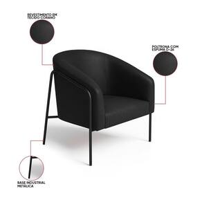 Poltrona Sala Industrial Alta Preto Stella Sintético Pu Preto D03 - D'rossi A Poltrona Stella com base industrial alta preto e revestimento em sintético pu preto, une conforto e resistência em um único móvel. Seu design moderno apresenta linhas curvas elegantes no encosto e braços integrados, transmitindo aconchego e refinamento. A base metálica alta, feita em tubos arredondados resistentes à oxidação, contorna lateralmente a peça, criando um visual leve e robusto. A estrutura em madeira de eucalipto garante durabilidade, enquanto o estofamento em espuma D-26 de alta densidade proporciona maciez e suporte ergonômico. O aço carbono com pintura eletrostática da base assegura estabilidade e acabamento duradouro. Suportando até 120 kg, a Poltrona Stella é ideal para salas de estar, recepções ou cantos de leitura, agregando bem-estar ao ambiente. Versátil, combina com diferentes estilos, do industrial ao minimalista sofisticado. A Poltrona Stella vem para ser a protagonista da sua decoração, unindo sofisticação e exclusividade. Dimensões do Produto: Altura Total: 80 cm Largura Total: 73 cm Profundidade Total: 67 cm Peso: 21 kg Outras Medidas: Altura do Encosto: 40 cm Largura do Assento: 45 cm Profundidade do Assento: 45 cm Altura do chão ao Assento: 45 cm Espessura do Assento: 15 cm Espessura do Braço: 7 cm Altura do chão ao Braço: 70 cm Altura Interna do Braço: 28 cm Especificações do Produto: Estrutura: Madeira de Eucalipto Material do Estofamento: Espuma D-26 (alta densidade) Revestimento: Sintético PUPeso Máximo Suportado: Até 120 Kg Tipo de Pés: Base Industrial Material/Acabamento da Base: Aço Carbono com Pintura eletrostática Inclui Almofada Extra: Não Tipo de Encosto: Fixo Tipo de Assento: Fixo Com Apoio de Pés: Não Com Altura Ajustável: Não É Reclinável: Não É Giratória: Não Diferenciais: Design moderno com linhas curvas; Detalhe lateral em tubo metálico redondo resistente à oxidação. Complexidade da Montagem: Baixa Montagem: O produto vai montado, apenas parafusar a base na poltrona Garantia: 90 dias contra de fabricação Instruções de Limpeza: Utilizar um pano limpo e levemente úmido Quantidade de Volumes: 1 Caixa Medida das Embalagens: Caixa : 72 cm x 66 cm x 57 cm : É feita somente até o térreo ou portaria. Confira sempre as medidas das embalagens para assegurar que o produto passe por portas e escadas do .