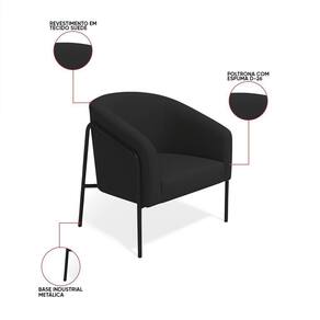 Poltrona Sala Industrial Alta Preto Stella Suede Preto D03 - D'rossi A Poltrona Stella com base industrial alta preto e revestimento em suede preto une conforto e resistência em um único móvel. Seu design moderno apresenta linhas curvas elegantes no encosto e braços integrados, transmitindo aconchego e refinamento. A base metálica alta, feita em tubos arredondados resistentes à oxidação, contorna lateralmente a peça, criando um visual leve e robusto. A estrutura em madeira de eucalipto garante durabilidade, enquanto o estofamento em espuma D-26 de alta densidade proporciona maciez e suporte ergonômico. O aço carbono com pintura eletrostática da base assegura estabilidade e acabamento duradouro. Suportando até 120 kg, a Poltrona Stella é ideal para salas de estar, recepções ou cantos de leitura, agregando bem-estar ao ambiente. Versátil, combina com diferentes estilos, do industrial ao minimalista sofisticado. A Poltrona Stella vem para ser a protagonista da sua decoração, unindo sofisticação e exclusividade. Dimensões do Produto: Altura Total: 80 cm Largura Total: 73 cm Profundidade Total: 67 cm Peso: 21 kg Outras Medidas: Altura do Encosto: 40 cm Largura do Assento: 45 cm Profundidade do Assento: 45 cm Altura do chão ao Assento: 45 cm Espessura do Assento: 15 cm Espessura do Braço: 7 cm Altura do chão ao Braço: 70 cm Altura Interna do Braço: 28 cm Especificações do Produto: Estrutura: Madeira de Eucalipto Material do Estofamento: Espuma D-26 (alta densidade) Revestimento: SuedePeso Máximo Suportado: Até 120 Kg Tipo de Pés: Base Industrial Material/Acabamento da Base: Aço Carbono com Pintura eletrostática Inclui Almofada Extra: Não Tipo de Encosto: Fixo Tipo de Assento: Fixo Com Apoio de Pés: Não Com Altura Ajustável: Não É Reclinável: Não É Giratória: Não Diferenciais: Design moderno com linhas curvas; Detalhe lateral em tubo metálico redondo resistente à oxidação. Complexidade da Montagem: Baixa Montagem: O produto vai montado, apenas parafusar a base na poltrona Garantia: 90 dias contra de fabricação Instruções de Limpeza: Utilizar um pano limpo e levemente úmido Quantidade de Volumes: 1 Caixa Medida das Embalagens: Caixa : 72 cm x 66 cm x 57 cm : É feita somente até o térreo ou portaria. Confira sempre as medidas das embalagens para assegurar que o produto passe por portas e escadas do .