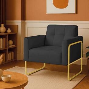 Poltrona Sala Industrial Alta Tubo Dourado Elisa Sintético D03 - D'rossi Cor Grafite Conheça a combinação perfeita de charme e conforto que a Poltrona Elisa proporciona! Com uma estética inspirada no estilo industrial, esta poltrona se destaca pela sua base metálica dourada de design tubular redondo com laterais altas, fabricada em metal de alta qualidade, que confere um toque moderno e sofisticado. A estrutura robusta é construída com madeira de eucalipto reflorestada. O revestimento em tecido Sintético, oferece uma textura suave e extremamente agradável ao toque. A costura detalhada no assento e no encosto adiciona à poltrona um toque de requinte. Com capacidade para suportar até 120 kg, esta poltrona é a escolha perfeita para criar um canto de leitura, um espaço de relaxamento ou para complementar a decoração de salas de estar, escritórios, quartos e até mesmo espaços comerciais. Transforme sua casa em um ambiente mais acolhedor e com personalidade. Dimensões do Produto: Altura Total: 81 cm Largura Total: 70 cm Profundidade Total: 64 cm Peso: 16 kg Outras Medidas: Altura do Encosto: 36 cm Largura do Assento: 47 cm Profundidade do Assento: 48 cm Altura do chão ao Assento: 45 cm Espessura do Assento: 20 cm Espessura do Braço: 9 cm Altura interna do Braço: 20 cm Especificações do Produto: Estrutura: Madeira Eucalipto Reflorestada Densidade da Espuma: Espuma D-26 Revestimento: Sintético Peso Suportado: Até 120 Kg Tipo de Pés: Base Metálica Laterais Alta Tubular Redonda Acabamento da Base: Pintura eletrostática Material da Base: Metálica em aço carbono Possui Sapatas Niveladora: Sim Com Altura Ajustável: Não Possui Rodízios: Não Com Apoio de Pés: Não Tipo de Encosto: Fixo Tipo de Assento: Fixo Almofada do Assento: Fixa Almofada do Encosto: Fixa Possui Apoio para Braços: Sim Acompanha Almofadas Extras: Não É Retrátil: Não É Reclinável: Não É Extensível: Não É Gamer: Não É Giratória: Não Quantidade de Lugares: 1 Lugar Diferenciais: Design com estilo industrial; Estrutura reforçada; Costura detalhada no assento e no encosto. Complexidade da Montagem: Baixo Sistema de Montagem: O produto é enviado montado, sendo necessário somente parafusar a base Montagem: O produto vai montado, apenas parafusar a base Garantia: 90 dias contra defeito de fabricação Instruções de Limpeza: Utilizar um pano limpo e levemente úmido Quantidade de Volumes: 1 Caixa Medida das Embalagens: Caixa 1: 72 x 65 x 57 cm Entrega: É feita somente até o térreo ou portaria. Confira sempre as medidas das embalagens para assegurar que o produto passe por portas e escadas do local.
