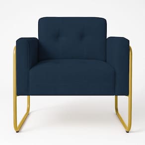 Poltrona Sala Industrial Alta Tubo Dourado Elisa Suede Azul Marinho D03 - D`rossi