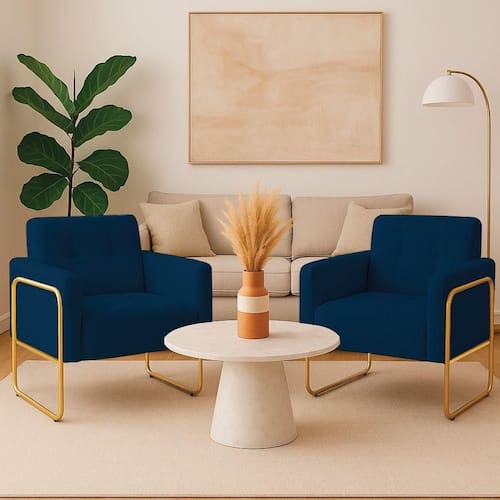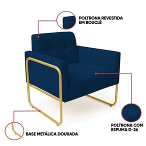 Poltrona Sala Industrial Alta Tubo Dourado Kit 2 Elisa Bouclê D03 - D`rossi Cor Azul