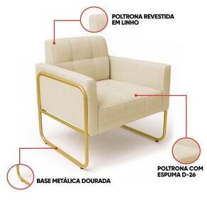 Poltrona Sala Industrial Alta Tubo Dourado Kit 2 Elisa Linho Bege D03 - D'rossi Conheça a combinação perfeita de charme e conforto que o kit 2 Poltronas Elisa proporciona! Com uma estética inspirada no estilo industrial, esta poltrona se destaca pela sua base metálica de design tubular redondo com laterais altas, fabricada em metal de alta qualidade, que confere um toque moderno e sofisticado. A estrutura robusta é construída com madeira de eucalipto reflorestada. O revestimento em tecido Linho Bege, oferece uma textura suave e extremamente agradável ao toque. A costura detalhada no assento e no encosto adiciona à poltrona um toque de requinte. Com capacidade para suportar até 120 kg, esta poltrona é a escolha perfeita para criar um canto de leitura, um espaço de relaxamento ou para complementar a decoração de salas de estar, escritórios, quartos e até mesmo espaços comerciais. Transforme sua casa em um ambiente mais acolhedor e com personalidade. Dimensões do Produto: Altura Total: 81 cm Largura Total: 70 cm Profundidade Total: 64 cm Peso: 16 kg Outras Medidas: Altura do Encosto: 36 cm Largura do Assento: 47 cm Profundidade do Assento: 48 cm Altura do chão ao Assento: 45 cm Espessura do Assento: 20 cm Espessura do Braço: 9 cm Altura interna do Braço: 20 cm Especificações do Produto: Estrutura: Madeira Eucalipto Reflorestada Densidade da Espuma: Espuma D-26 Revestimento: LinhoPeso Suportado: Até 120 Kg Tipo de Pés: Base Metálica Laterais Alta Tubular Redonda Acabamento da Base: Pintura eletrostática Material da Base: Metálica em aço carbono Possui Sapatas Niveladora: Sim Com Altura Ajustável: Não Possui Rodízios: Não Com Apoio de Pés: Não Tipo de Encosto: Fixo Tipo de Assento: Fixo Almofada do Assento: Fixa Almofada do Encosto: Fixa Possui Apoio para Braços: Sim Acompanha Almofadas Extras: Não É Retrátil: Não É Reclinável: Não É Extensível: Não É Gamer: Não É Giratória: Não Diferenciais: Design com estilo industrial; Estrutura reforçada ; Costura detalhada no assento e no encosto. Complexidade da Montagem: Baixo Sistema de Montagem: O produto vai montado, apenas parafusar a base Montagem: Recomendamos que seja feita por um Garantia: 90 dias contra de fabricação Instruções de Limpeza: Utilizar um pano limpo e levemente úmido Quantidade de Volumes: 1 Caixa Medida das Embalagens: Caixa 1: 83 x 77 x 72 cm : É feita somente até o térreo ou portaria. Confira sempre as medidas das embalagens para assegurar que o produto passe por portas e escadas do .