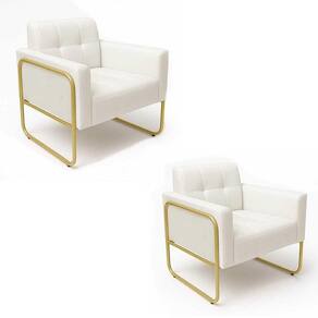 Poltrona Sala Industrial Alta Tubo Dourado Kit 2 Elisa Sintético Branco D03 - D'rossi