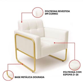 Poltrona Sala Industrial Alta Tubo Dourado Kit 2 Elisa Sintético Branco D03 - D`rossi