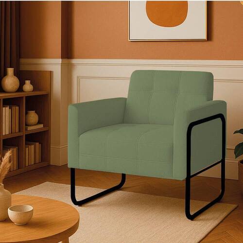 Poltrona Sala Industrial Alta Tubo Preto Elisa Bouclê Pistache D03 - D'rossi Conheça a combinação perfeita de charme e conforto que a Poltrona Elisa proporciona! Com uma estética inspirada no estilo industrial, esta poltrona se destaca pela sua base metálica preta de design tubular redondo com laterais altas, fabricada em metal de alta qualidade, que confere um toque moderno e sofisticado. A estrutura robusta é construída com madeira de eucalipto reflorestada. O revestimento em tecido bouclê pistache, oferece uma textura suave e extremamente agradável ao toque. A costura detalhada no assento e no encosto adiciona à poltrona um toque de requinte. Com capacidade para suportar até 120 kg, esta poltrona é a escolha perfeita para criar um canto de leitura, um espaço de relaxamento ou para complementar a decoração de salas de estar, escritórios, quartos e até mesmo espaços comerciais. Transforme sua casa em um ambiente mais acolhedor e com personalidade. Dimensões do Produto: Altura Total: 81 cm Largura Total: 70 cm Profundidade Total: 64 cm Peso: 16 kg Outras Medidas: Altura do Encosto: 36 cm Largura do Assento: 47 cm Profundidade do Assento: 48 cm Altura do chão ao Assento: 45 cm Espessura do Assento: 20 cm Espessura do Braço: 9 cm Altura interna do Braço: 20 cm Especificações do Produto: Estrutura: Madeira Eucalipto Reflorestada Densidade da Espuma: Espuma D-26 Revestimento: Bouclê Peso Suportado: Até 120 Kg Tipo de Pés: Base Metálica Laterais Alta Tubular Redonda Acabamento da Base: Pintura eletrostática Material da Base: Metálica em aço carbono Possui Sapatas Niveladora: Sim Com Altura Ajustável: Não Possui Rodízios: Não Com Apoio de Pés: Não Tipo de Encosto: Fixo Tipo de Assento: Fixo Almofada do Assento: Fixa Almofada do Encosto: Fixa Possui Apoio para Braços: Sim Acompanha Almofadas Extras: Não É Retrátil: Não É Reclinável: Não É Extensível: Não É Gamer: Não É Giratória: Não Quantidade de Lugares: 1 Lugar Diferenciais: Design com estilo industrial; Estrutura reforçada; Costura detalhada no assento e no encosto. Complexidade da Montagem: Baixo Sistema de Montagem: O produto é enviado montado, sendo necessário somente parafusar a base Montagem: O produto vai montado, apenas parafusar a base Garantia: 90 dias contra de fabricação Instruções de Limpeza: Utilizar um pano limpo e levemente úmido Quantidade de Volumes: 1 Caixa Medida das Embalagens: Caixa 1: 72 x 65 x 57 cm : É feita somente até o térreo ou portaria. Confira sempre as medidas das embalagens para assegurar que o produto passe por portas e escadas do .