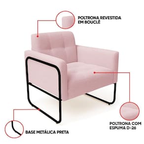 Poltrona Sala Industrial Alta Tubo Preto Elisa Bouclê Rosê D03 - D'rossi