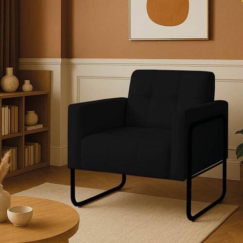 Poltrona Sala Industrial Alta Tubo Preto Elisa Sintético D03 - D'rossi Cor Preto Conheça a combinação perfeita de charme e conforto que a Poltrona Elisa proporciona! Com uma estética inspirada no estilo industrial, esta poltrona se destaca pela sua base metálica preta de design tubular redondo com laterais altas, fabricada em metal de alta qualidade, que confere um toque moderno e sofisticado. A estrutura robusta é construída com madeira de eucalipto reflorestada. O revestimento em tecido Sintético, oferece uma textura suave e extremamente agradável ao toque. A costura detalhada no assento e no encosto adiciona à poltrona um toque de requinte. Com capacidade para suportar até 120 kg, esta poltrona é a escolha perfeita para criar um canto de leitura, um espaço de relaxamento ou para complementar a decoração de salas de estar, escritórios, quartos e até mesmo espaços comerciais. Transforme sua casa em um ambiente mais acolhedor e com personalidade. Dimensões do Produto: Altura Total: 81 cm Largura Total: 70 cm Profundidade Total: 64 cm Peso: 16 kg Outras Medidas: Altura do Encosto: 36 cm Largura do Assento: 47 cm Profundidade do Assento: 48 cm Altura do chão ao Assento: 45 cm Espessura do Assento: 20 cm Espessura do Braço: 9 cm Altura interna do Braço: 20 cm Especificações do Produto: Estrutura: Madeira Eucalipto Reflorestada Densidade da Espuma: Espuma D-26 Revestimento: SintéticoPeso Suportado: Até 120 Kg Tipo de Pés: Base Metálica Laterais Alta Tubular Redonda Acabamento da Base: Pintura eletrostática Material da Base: Metálica em aço carbono Possui Sapatas Niveladora: Sim Com Altura Ajustável: Não Possui Rodízios: Não Com Apoio de Pés: Não Tipo de Encosto: Fixo Tipo de Assento: Fixo Almofada do Assento: Fixa Almofada do Encosto: Fixa Possui Apoio para Braços: Sim Acompanha Almofadas Extras: Não É Retrátil: Não É Reclinável: Não É Extensível: Não É Gamer: Não É Giratória: Não Quantidade de Lugares: 1 Lugar Diferenciais: Design com estilo industrial; Estrutura reforçada; Costura detalhada no assento e no encosto. Complexidade da Montagem: Baixo Sistema de Montagem: O produto é enviado montado, sendo necessário somente parafusar a base Montagem: O produto vai montado, apenas parafusar a base Garantia: 90 dias contra defeito de fabricação Instruções de Limpeza: Utilizar um pano limpo e levemente úmido Quantidade de Volumes: 1 Caixa Medida das Embalagens: Caixa 1: 72 x 65 x 57 cm Entrega: É feita somente até o térreo ou portaria. Confira sempre as medidas das embalagens para assegurar que o produto passe por portas e escadas do local.
