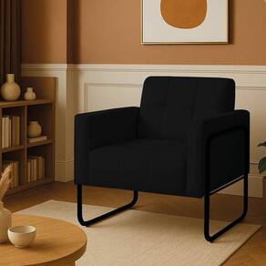 Poltrona Sala Industrial Alta Tubo Preto Elisa Sintético Preto D03 - D'rossi Conheça a combinação perfeita de charme e conforto que a Poltrona Elisa proporciona! Com uma estética inspirada no estilo industrial, esta poltrona se destaca pela sua base metálica preta de design tubular redondo com laterais altas, fabricada em metal de alta qualidade, que confere um toque moderno e sofisticado. A estrutura robusta é construída com madeira de eucalipto reflorestada. O revestimento em tecido Sintético Preto, oferece uma textura suave e extremamente agradável ao toque. A costura detalhada no assento e no encosto adiciona à poltrona um toque de requinte. Com capacidade para suportar até 120 kg, esta poltrona é a escolha perfeita para criar um canto de leitura, um espaço de relaxamento ou para complementar a decoração de salas de estar, escritórios, quartos e até mesmo espaços comerciais. Transforme sua casa em um ambiente mais acolhedor e com personalidade. Dimensões do Produto: Altura Total: 81 cm Largura Total: 70 cm Profundidade Total: 64 cm Peso: 16 kg Outras Medidas: Altura do Encosto: 36 cm Largura do Assento: 47 cm Profundidade do Assento: 48 cm Altura do chão ao Assento: 45 cm Espessura do Assento: 20 cm Espessura do Braço: 9 cm Altura interna do Braço: 20 cm Especificações do Produto: Estrutura: Madeira Eucalipto Reflorestada Densidade da Espuma: Espuma D-26 Revestimento: SintéticoPeso Suportado: Até 120 Kg Tipo de Pés: Base Metálica Laterais Alta Tubular Redonda Acabamento da Base: Pintura eletrostática Material da Base: Metálica em aço carbono Possui Sapatas Niveladora: Sim Com Altura Ajustável: Não Possui Rodízios: Não Com Apoio de Pés: Não Tipo de Encosto: Fixo Tipo de Assento: Fixo Almofada do Assento: Fixa Almofada do Encosto: Fixa Possui Apoio para Braços: Sim Acompanha Almofadas Extras: Não É Retrátil: Não É Reclinável: Não É Extensível: Não É Gamer: Não É Giratória: Não Quantidade de Lugares: 1 Lugar Diferenciais: Design com estilo industrial; Estrutura reforçada; Costura detalhada no assento e no encosto. Complexidade da Montagem: Baixo Sistema de Montagem: O produto é enviado montado, sendo necessário somente parafusar a base Montagem: O produto vai montado, apenas parafusar a base Garantia: 90 dias contra de fabricação Instruções de Limpeza: Utilizar um pano limpo e levemente úmido Quantidade de Volumes: 1 Caixa Medida das Embalagens: Caixa 1: 72 x 65 x 57 cm : É feita somente até o térreo ou portaria. Confira sempre as medidas das embalagens para assegurar que o produto passe por portas e escadas do .