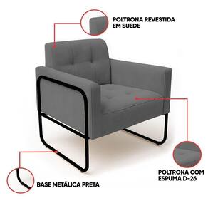 Poltrona Sala Industrial Alta Tubo Preto Kit 2 Elisa Suede Grafite D03 - D'rossi Conheça a combinação perfeita de charme e conforto que o kit 2 Poltronas Elisa proporciona! Com uma estética inspirada no estilo industrial, esta poltrona se destaca pela sua base metálica preta de design tubular redondo com laterais altas, fabricada em metal de alta qualidade, que confere um toque moderno e sofisticado. A estrutura robusta é construída com madeira de eucalipto reflorestada. O revestimento em tecido Suede Grafite, oferece uma textura suave e extremamente agradável ao toque. A costura detalhada no assento e no encosto adiciona à poltrona um toque de requinte. Com capacidade para suportar até 120 kg, esta poltrona é a escolha perfeita para criar um canto de leitura, um espaço de relaxamento ou para complementar a decoração de salas de estar, escritórios, quartos e até mesmo espaços comerciais. Transforme sua casa em um ambiente mais acolhedor e com personalidade. Dimensões do Produto: Altura Total: 81 cm Largura Total: 70 cm Profundidade Total: 64 cm Peso: 16 kg Outras Medidas: Altura do Encosto: 36 cm Largura do Assento: 47 cm Profundidade do Assento: 48 cm Altura do chão ao Assento: 45 cm Espessura do Assento: 20 cm Espessura do Braço: 9 cm Altura interna do Braço: 20 cm Especificações do Produto: Estrutura: Madeira Eucalipto Reflorestada Densidade da Espuma: Espuma D-26 Revestimento: SuedePeso Suportado: Até 120 Kg Tipo de Pés: Base Metálica Laterais Alta Tubular Redonda Acabamento da Base: Pintura eletrostática Material da Base: Metálica em aço carbono Possui Sapatas Niveladora: Sim Com Altura Ajustável: Não Possui Rodízios: Não Com Apoio de Pés: Não Tipo de Encosto: Fixo Tipo de Assento: Fixo Almofada do Assento: Fixa Almofada do Encosto: Fixa Possui Apoio para Braços: Sim Acompanha Almofadas Extras: Não É Retrátil: Não É Reclinável: Não É Extensível: Não É Gamer: Não É Giratória: Não Diferenciais: Design com estilo industrial; Estrutura reforçada ; Costura detalhada no assento e no encosto. Complexidade da Montagem: Baixo Sistema de Montagem: O produto vai montado, apenas parafusar a base Montagem: Recomendamos que seja feita por um profissional Garantia: 90 dias contra defeito de fabricação Instruções de Limpeza: Utilizar um pano limpo e levemente úmido Quantidade de Volumes: 1 Caixa Medida das Embalagens: Caixa 1: 83 x 77 x 72 cm Entrega: É feita somente até o térreo ou portaria. Confira sempre as medidas das embalagens para assegurar que o produto passe por portas e escadas do local.