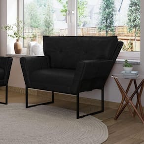 A Poltrona Anitta é uma peça que combina beleza, conforto e funcionalidade. Ela tem um design contemporâneo, sofisticado e um revestimento em tecido Sintético PU Preto que harmonizam com qualquer ambiente. Possui uma base industrial preto com um belo detalhe trabalhado no metal, que além de adicionar um toque de charme à peça, oferece um suporte sólido e , garantindo conforto superior ao sentar. Ela é ideal para sala de estar, recepções, mesa de jantar ou qualquer outro espaço que você queira decorar com estilo e bom gosto. Ela é produzida cuidadosamente em madeira de reflorestamento eucalipto, que garante a resistência e a sustentabilidade do produto. Ela suporta até 120 kg de peso, podendo ser utilizada por pessoas de diferentes biotipos. Ela tem um acabamento reforçado e espuma de qualidade D23, que oferece maciez e aconchego. A almofada fixa do encosto é revestida com fibra siliconada e conta com um detalhe elegante em botonê, que não só valoriza o design, mas também proporciona uma sensação de conforto inigualável. O encosto levemente triangular da poltrona adiciona uma estética exclusiva, enquanto os braços, com delicados frisos na costura enriquecem ainda mais o produto. A Poltrona Anitta é um produto de alta qualidade, sutileza e versatilidade. Ela é fácil de transportar, pois tem um peso leve e um tamanho compacto. A Poltrona Anitta é um produto que vai fazer a diferença na sua decoração e no seu bem-estar. Ela vai trazer personalidade e inovação para o seu ambiente. Aproveite essa e leve para casa uma poltrona de qualidade por um preço incrível. Essa é a sua chance de ter uma peça atraente na sua decoração por um preço imperdível. Corra e garanta seu Kit 2 Poltronas antes que acabe o estoque!