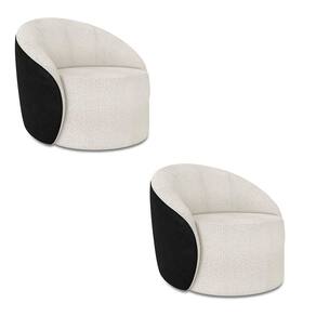Poltrona Sala Orgânica Kit 2 Lua Fixa Sintético Pu Preto/bouclê Cinza D03 - D`rossi