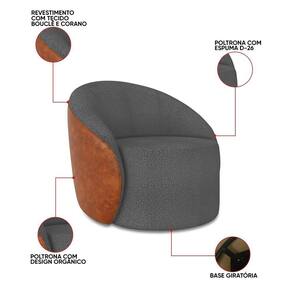 Estrutura: Madeira Eucalipto Reflorestada; Base: Aço Carbono; Revestimento: Sintético PU com Bouclê; Estofamento: Espuma D-26 (assento) e D-23 (encosto e braço).Vendido e entregue por WebContinental