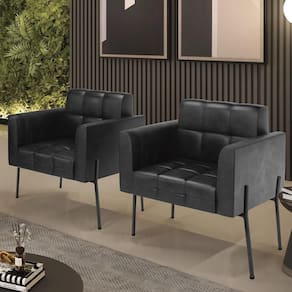 Você está procurando um Kit Poltrona que combine com a sua Sala De Estar, recepção ou seu quarto, que ofereça conforto e qualidade? Então você vai adorar a Poltrona Sala Pé Metal Preto Kit 2 Ana Sintético PU Preto, da Ibiza!