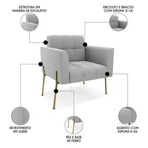Procurando uma poltrona que combine com a sua Sala De Estar, recepção ou seu quarto, que ofereça conforto e qualidade? Então você vai adorar a Poltrona Para Sala Pés Metálicos Dourado Ana Suede Cinza, da Ibiza!