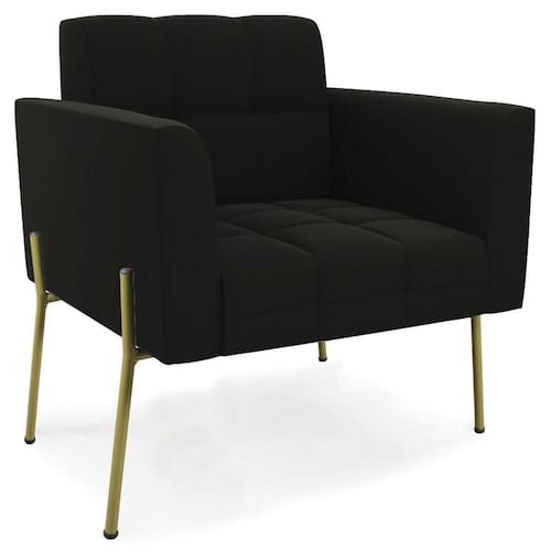 Procurando uma poltrona que combine com a sua Sala De Estar, recepção ou seu quarto, que ofereça conforto e qualidade? Então você vai adorar a Poltrona Para Sala Pés Metálicos Dourado Ana Suede Preto, da Ibiza!