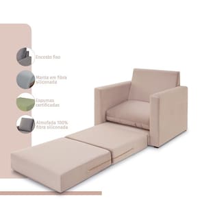 Assentos com espuma flexível de poliuretano densidade 26kg/m, certificada, fabricação própria. Com assento dobráveis, ela abre totalmente virando uma cama. Enchimento do encosto: espuma D-26 e fibra de poliéster siliconada. Estrutura de madeira maciça de pinus e eucalipto 100% reflorestada. Fixação da estrutura: grampos galvanizados anti-ferrugem. Apoiados no chão com sapatas de pvc. Revestimento/tecido: veludo 100% poliéster, com toque macio.