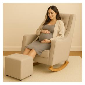 A Poltrona Sofá Cadeira Amamentação Balanço com Puff da marca Bebe e Cia, perfeita para momentos de conforto e aconchego. Com um design Premium, seus pés em madeira maciça de alto padrão na cor caramelo garantem resistência e estilo ao ambiente.