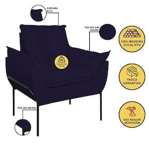 É Reclinável: Não | Desenho Do Tecido: Liso | Acessórios Incluídos: Não | É Sofá-Cama: Não | Estilo: Moderno | Cor Dos Pés: Preto | Linha: Premium | Material do estofamento: Suede | Unidades Por Kit: 1 | Densidade Da Espuma Do Assento: D-23 | Material De Enchimento Do Encosto: Espuma | Requer Montagem: Não | Altura: 86,5 cm | Marca: Balaqui Decor | Tipo de Garantia: Garantia do Fabricante | Coleção de Antiguidade: Não | Móvel Dobrável: Não | Dimensão (A x L x C): 86,5 x 80 x 61 | Estofado: Suede | de Assentos: 1 | Duração da Garantia: 3 meses | Largura: 80 cm | País de Origem: | Profundidade: 61 cm | Peso do Item (itemWeight): 15 kg | Tipo de produto: Poltrona | Material: Madeira | Fabricante: Balaqui Estofados | Modelo: Poltrona Opala com Pés de Metal | Quantidade de Peças: 1 | Quantidade de caixas de embalagem: 1 | Peso suportado: 180 kg | Material dos pés: Metal | Materiais da estrutura: Madeira | É modular: Não | É Em forma de U: Não | É de canto: Não | É com chaise: Não | Quantidade de Lugares: 1 | Montagem: Montagem Completa Cor: Azul Marinho